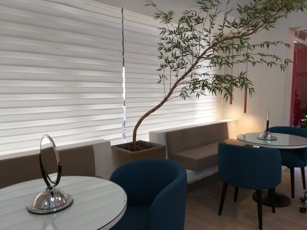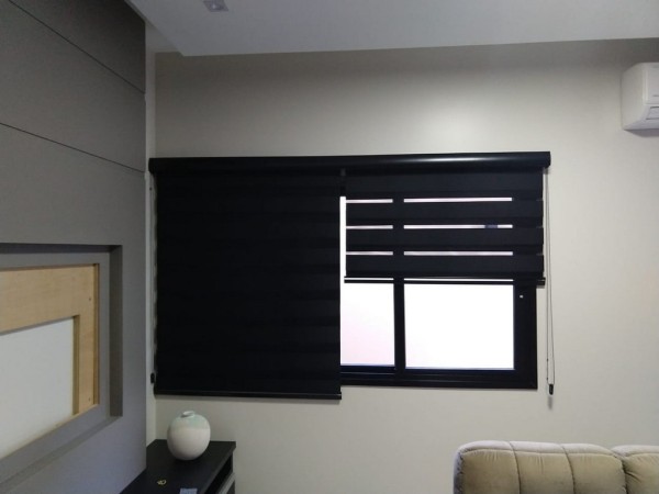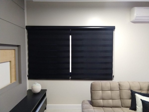 Esse modelo de persiana possui duas faixas intercaladas , sendo uma de tecido e outra de tela e a quantidade de tecido também é duplicada, pois quando são acionadas, criam um movimento e efeito maravilhoso, permitindo que os tecidos se intercalem oferecendo um efeito lúdico tornando o ambiente mais agradável.