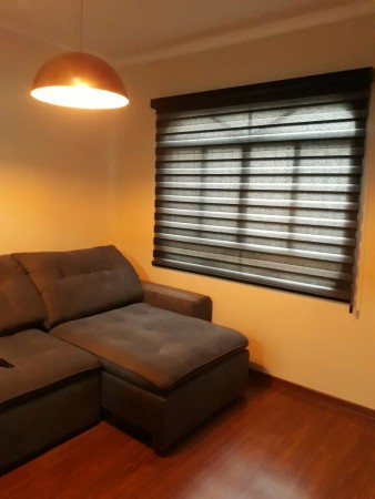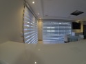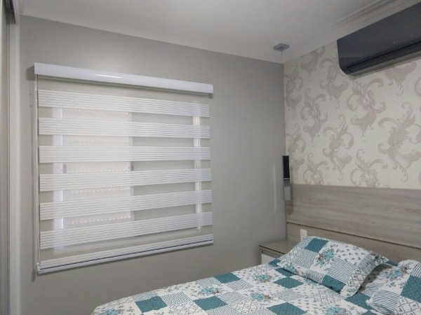 Esse modelo de persiana possui duas faixas intercaladas , sendo uma de tecido e outra de tela e a quantidade de tecido também é duplicada, pois quando são acionadas, criam um movimento e efeito maravilhoso, permitindo que os tecidos se intercalem oferecendo um efeito lúdico tornando o ambiente mais agradável.